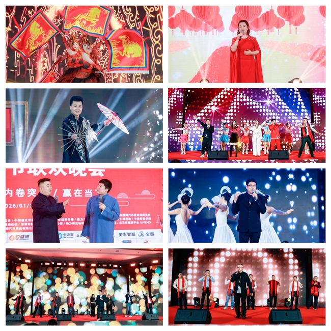 当晚19时30分,以“马跃春晖”为主题的第三届车界春节联欢晚会精彩上演。著名表演艺术家侯耀华先生、车界春晚组委会秘书长李洁登台致辞,在车界春晚王鹏的宣布下正式开幕。晚会融合专业艺术团体演出与行业特别策划的节目,武警艺术团带来专业表演,行业从业者撰稿《讲述中国汽车发展史》及自编的微剧《最美汽车人》、配乐诗朗诵《镜头下的汽车人》生动展现汽车人的风采,二十余位行业领袖共同演绎的诗朗诵《我在行业这些年》,以真挚情感讲述奋斗故事,引发全场强烈共鸣。